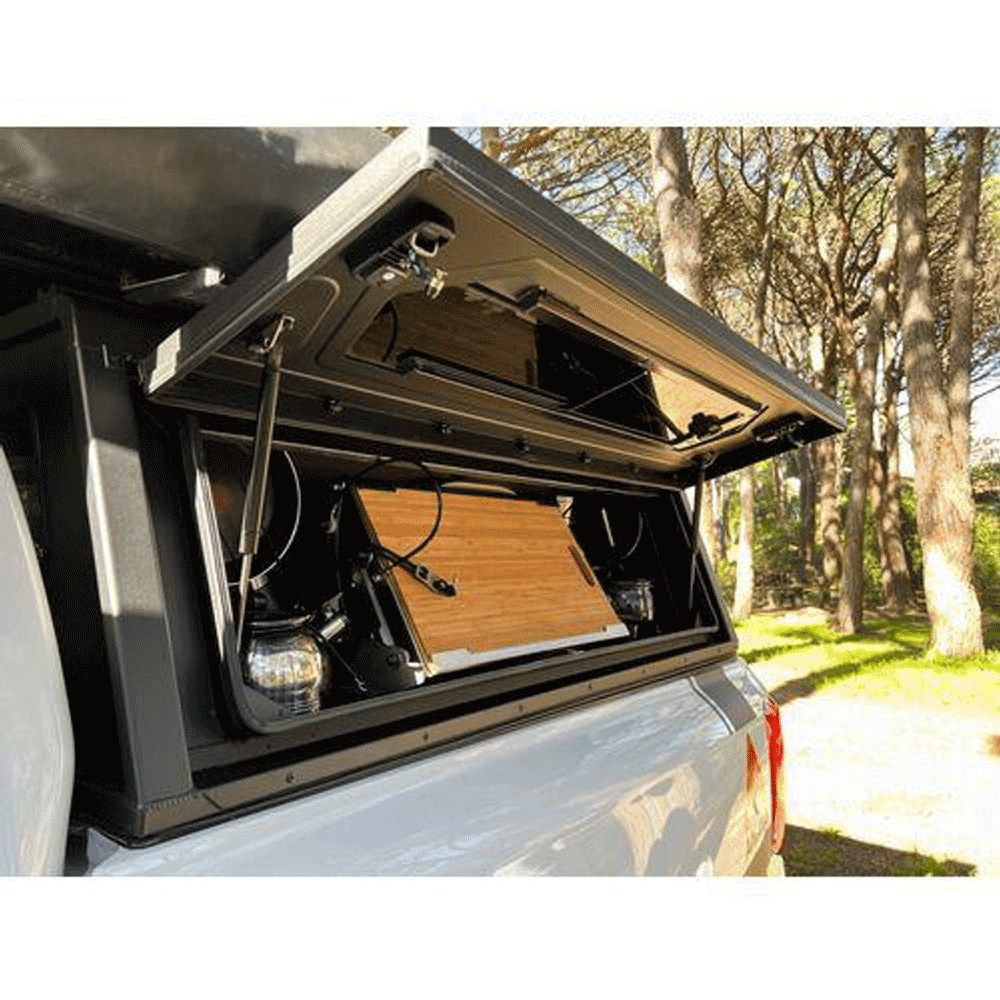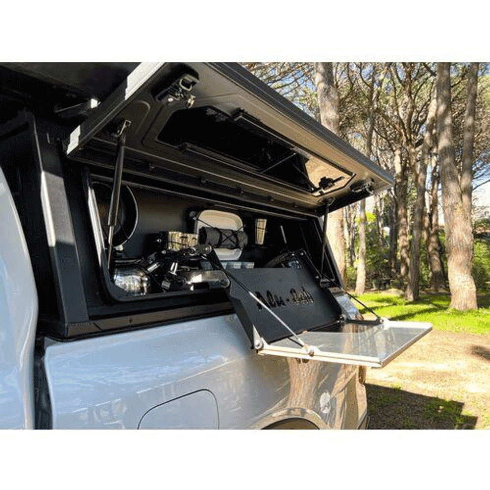 The ultimate all-in-one solution for mobile kitchens is here! The kit contains all the essentials required while on the go, including cookware, utensils, a spice rack and pre-installed cutting board. It fits seamlessly into the canopy, saving valuable space in the rig. Designed for easy setup, our new Contour Kitchen Kit integrates perfectly into existing Contour Canopies. Cooking utensils are always within reach with neatly organized compartments. The kitchen kit also features a useful top tray for holding anything from prepped ingredients to completed meals out of the way and off the table.