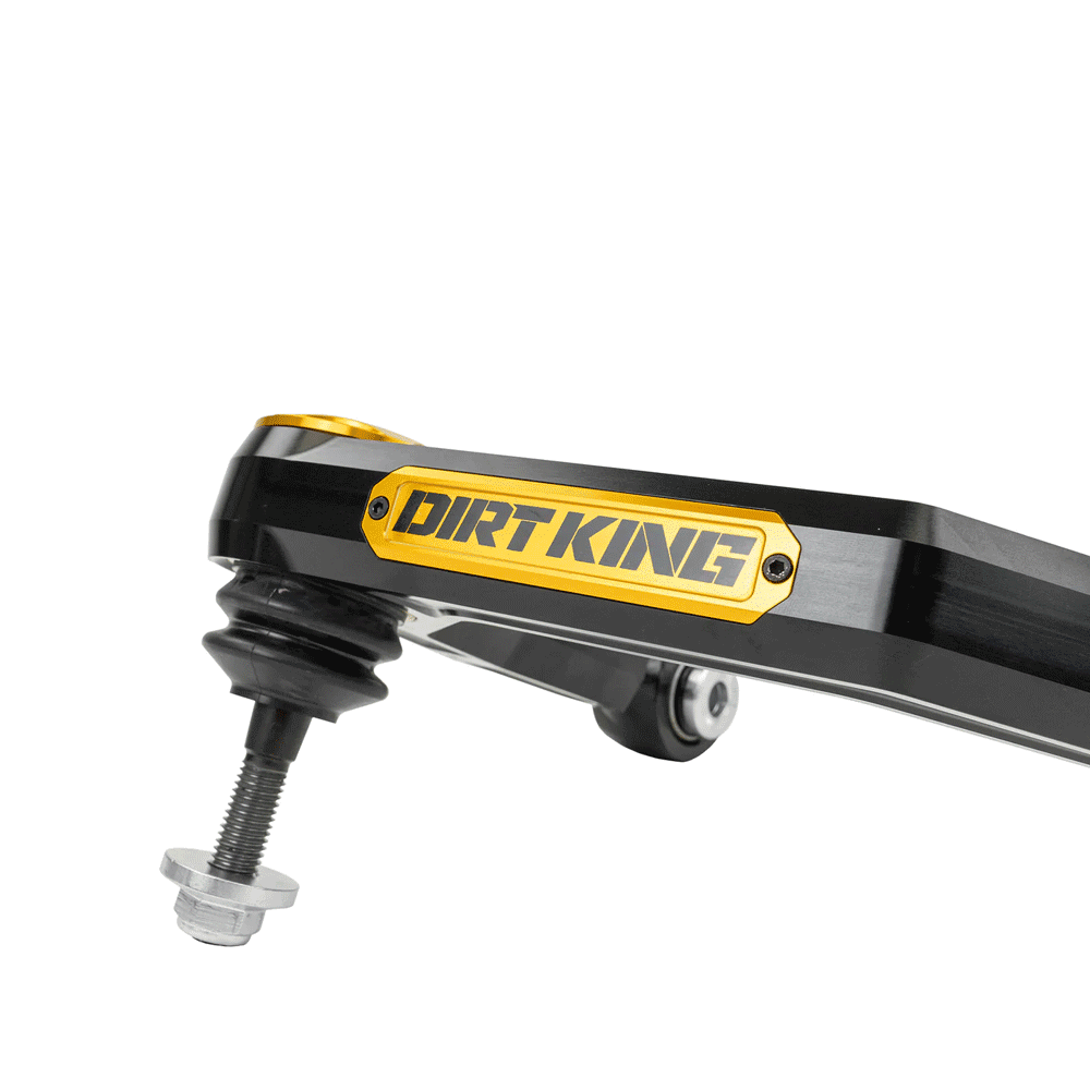 Factory control arms often compromise geometry and structural integrity due to excessive articulation at stock joints, but Dirt King arms solve this with improved caster settings and re-engineered pivot angles for better handling and articulation.
