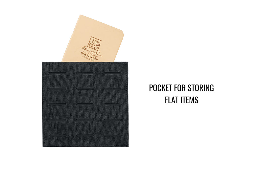 Behind the panel is a built-in slip pocket—ideal for stashing pocket notebooks, charging cables, or even that secret treasure map you swear you’ll use one day. Want to take your organization even further? Add the EDC Velcro Pocket behind the panel for extra space and even more control over your carry.