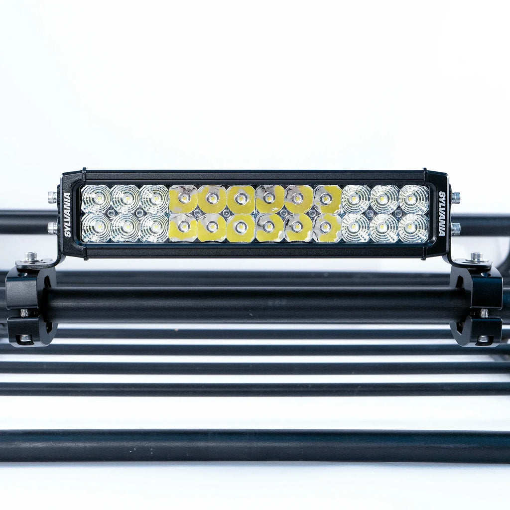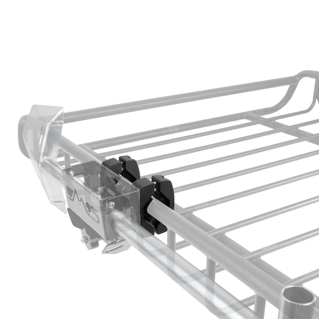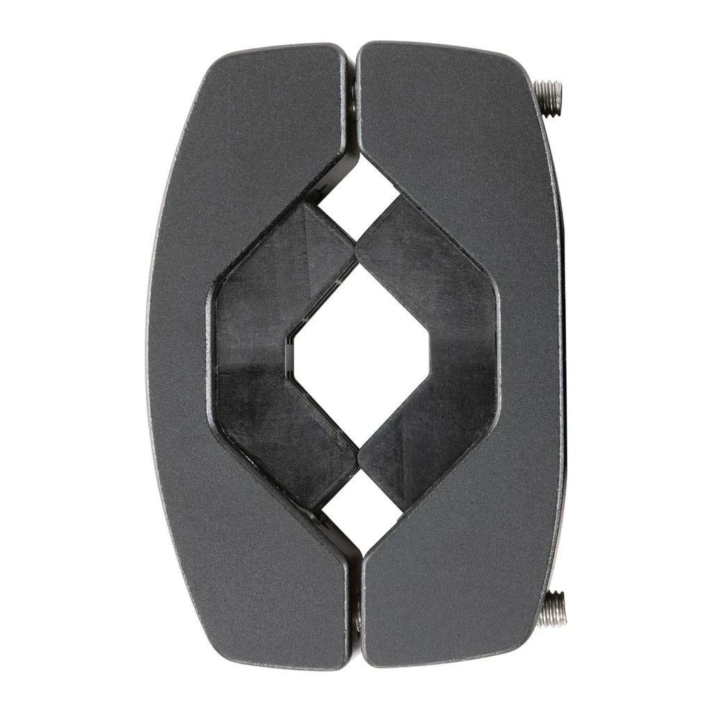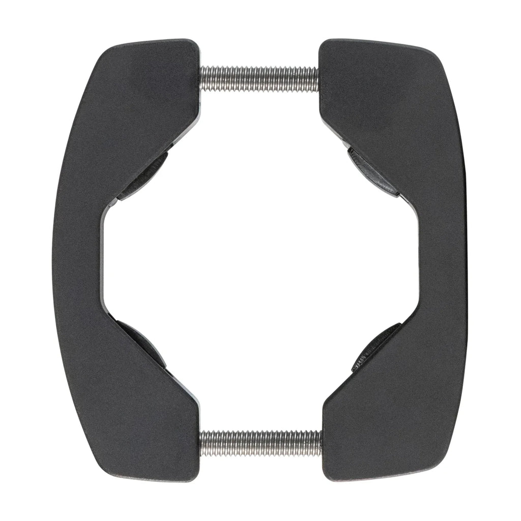 This overbuilt billet aluminum clamp attaches to any round bar (0.95"–2.25") with reversible silicone grip pads that hold tight, creating a flat, stable surface ready for light bars, speakers, RotopaX mounts, or traction boards.