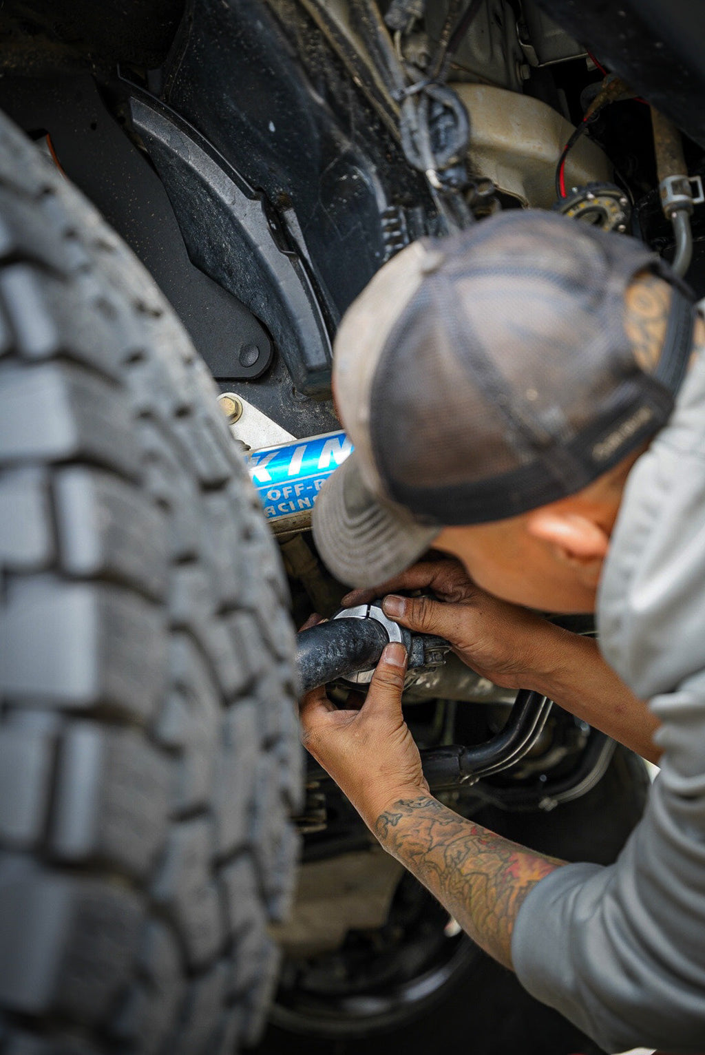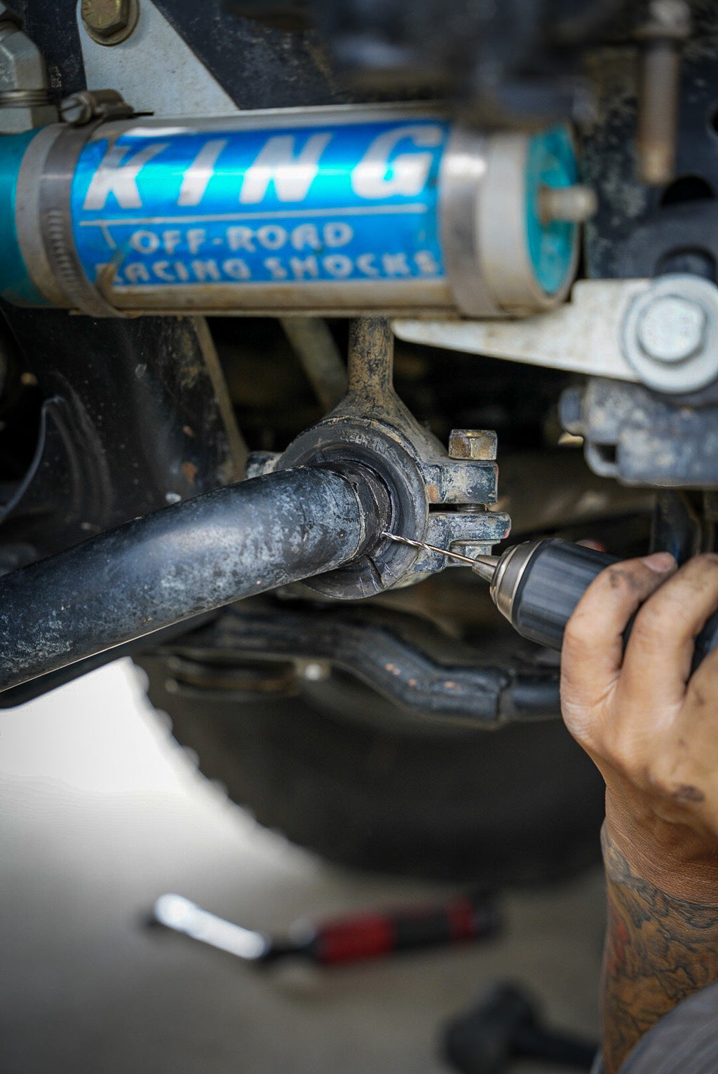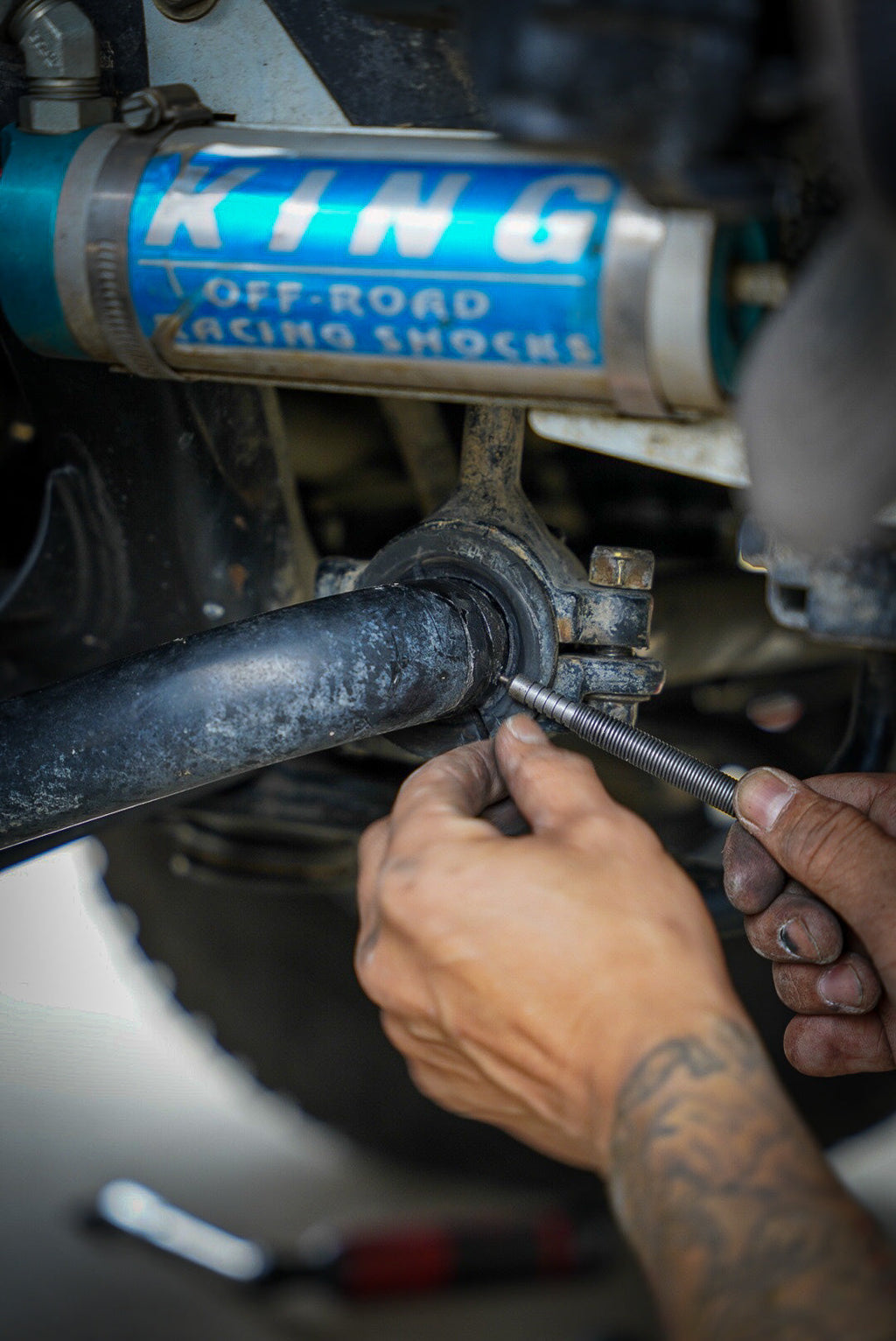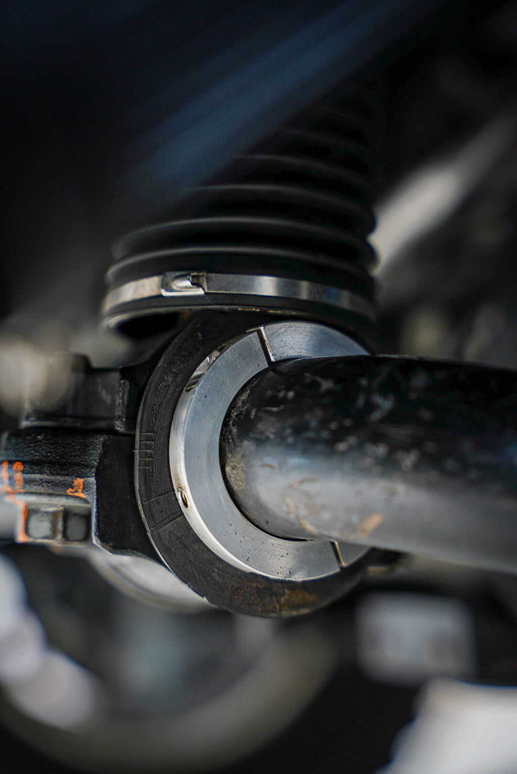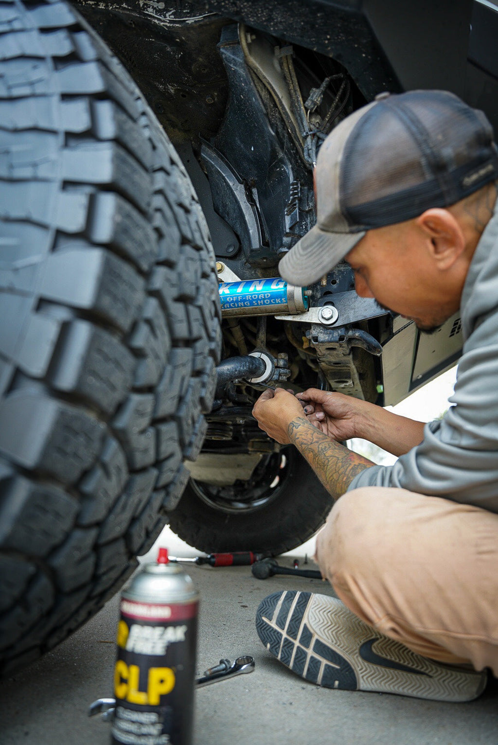 Since the KDSS system was introduced 12-plus years ago, owners often report an abnormal clunk that has proved difficult to diagnose. The worst-case scenario is a loose piston nut within the KDSS shock itself, in which case the shock needs to be replaced. Most likely, however, it is the actual body of the KDSS shock contacting the frame in situations where the suspension is heavily articulated, but once the factory straps are gone, the shock body will make contact on the frame with simple off angled driveways or similar