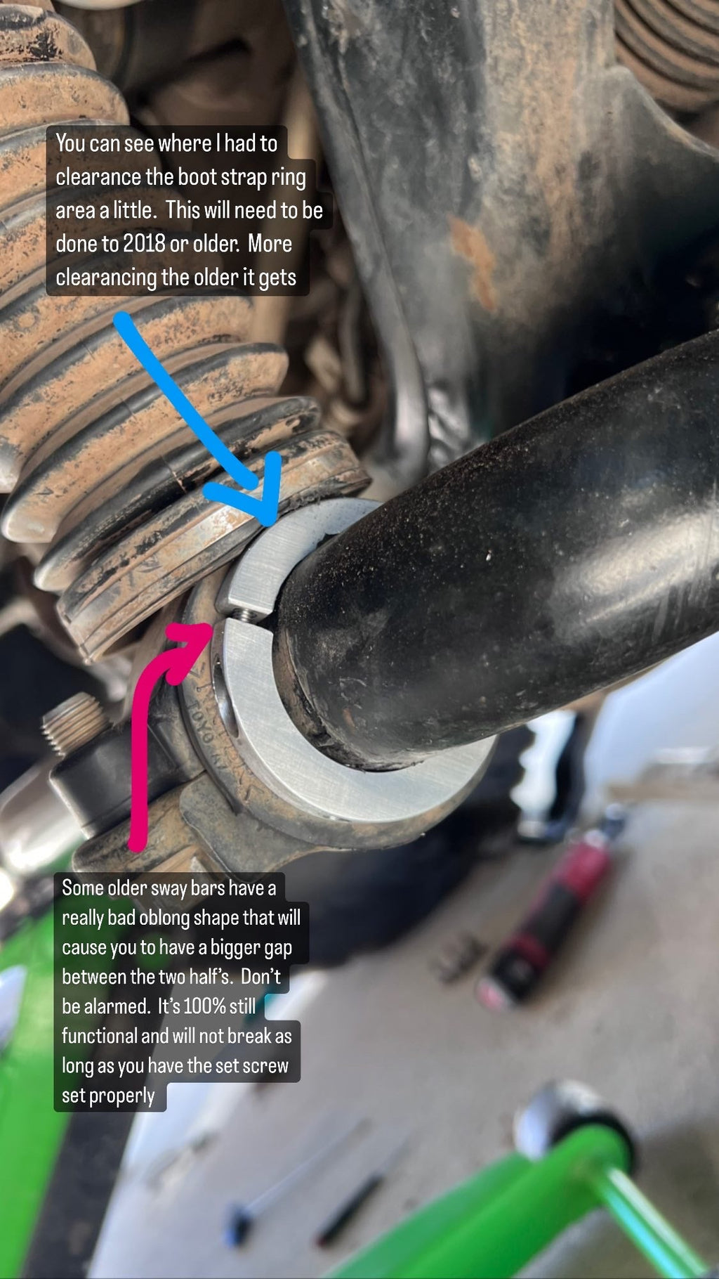 Also another thing is 2010-2017 has older style bushings and bottom caps to hold the sway bar. You will have to slightly clear the boot strap ring or get bottom caps and bushings for 2018+. Scroll through the pictures to see what clearance needs to be done on the boot strap ring for KDSS shock on the front driver side.