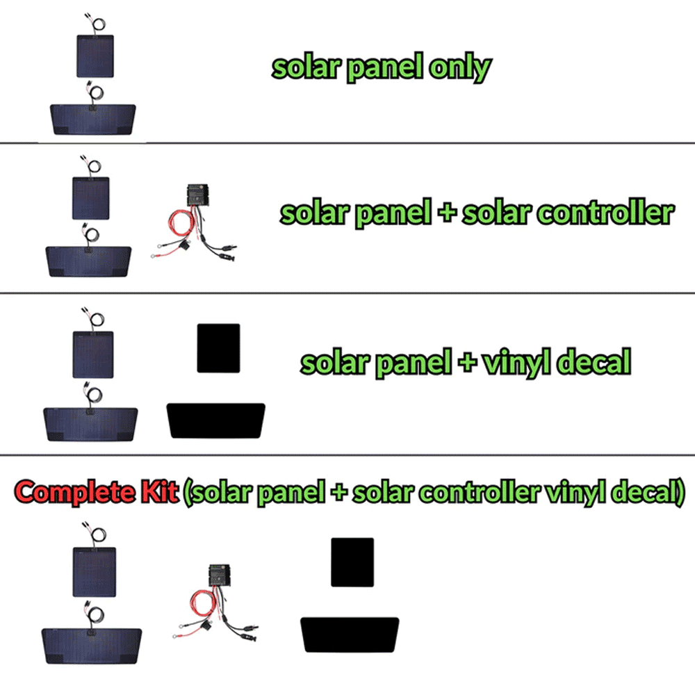 - The optional custom-fitted vinyl decal. A vinyl decal between the solar panel and hood is highly recommended. It protects the vehicle paint from damage.