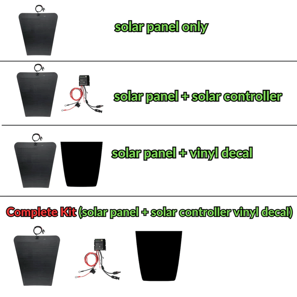 - The optional custom-fitted vinyl decal. A vinyl decal between the solar panel and hood is highly recommended. It protects the vehicle paint from damage.