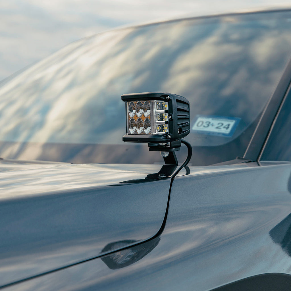Mount your lights with confidence and take on the trail with style with our Low Profile Ditch Light Brackets for 2022+ Tundra. Why use ditch lights? Ditch light mounts are roughly placed at a 45° angle away from the vehicle which illuminates the sides of the road at night to enhance visibility.
