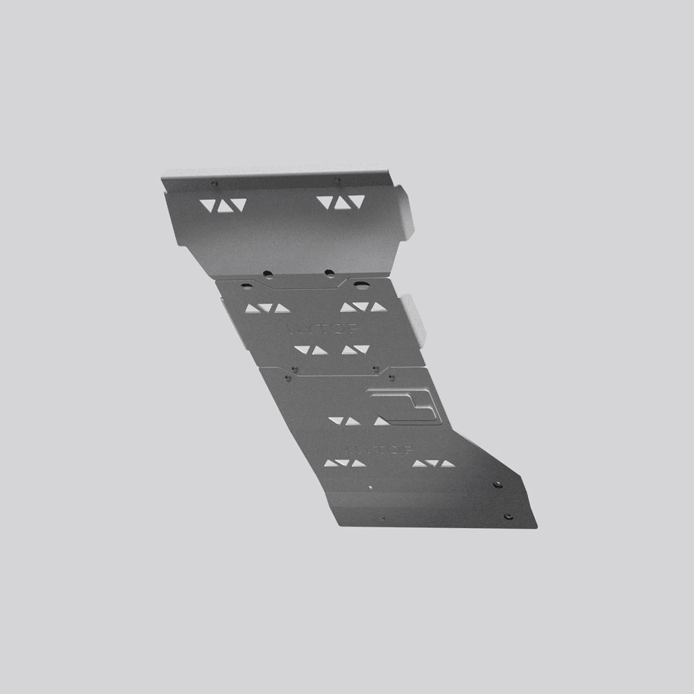 Not Your Typical Skid Plate Assembly for the Toyota Land Cruiser is TIG welded with ¼-inch aluminum, providing protection to both the engine and transmission, as well as the Stabilizer Disconnect Mechanism. The modular 3-piece design allows for easy removal and access for maintenance.