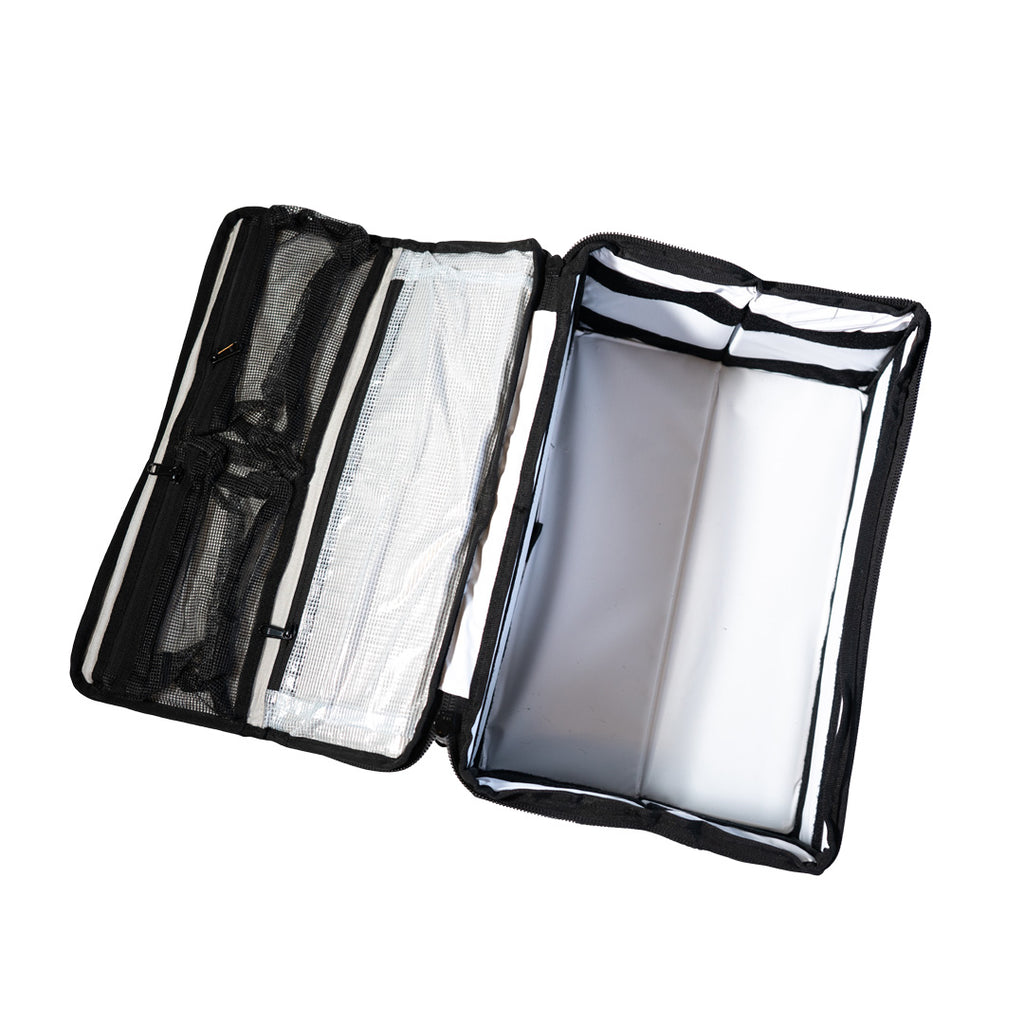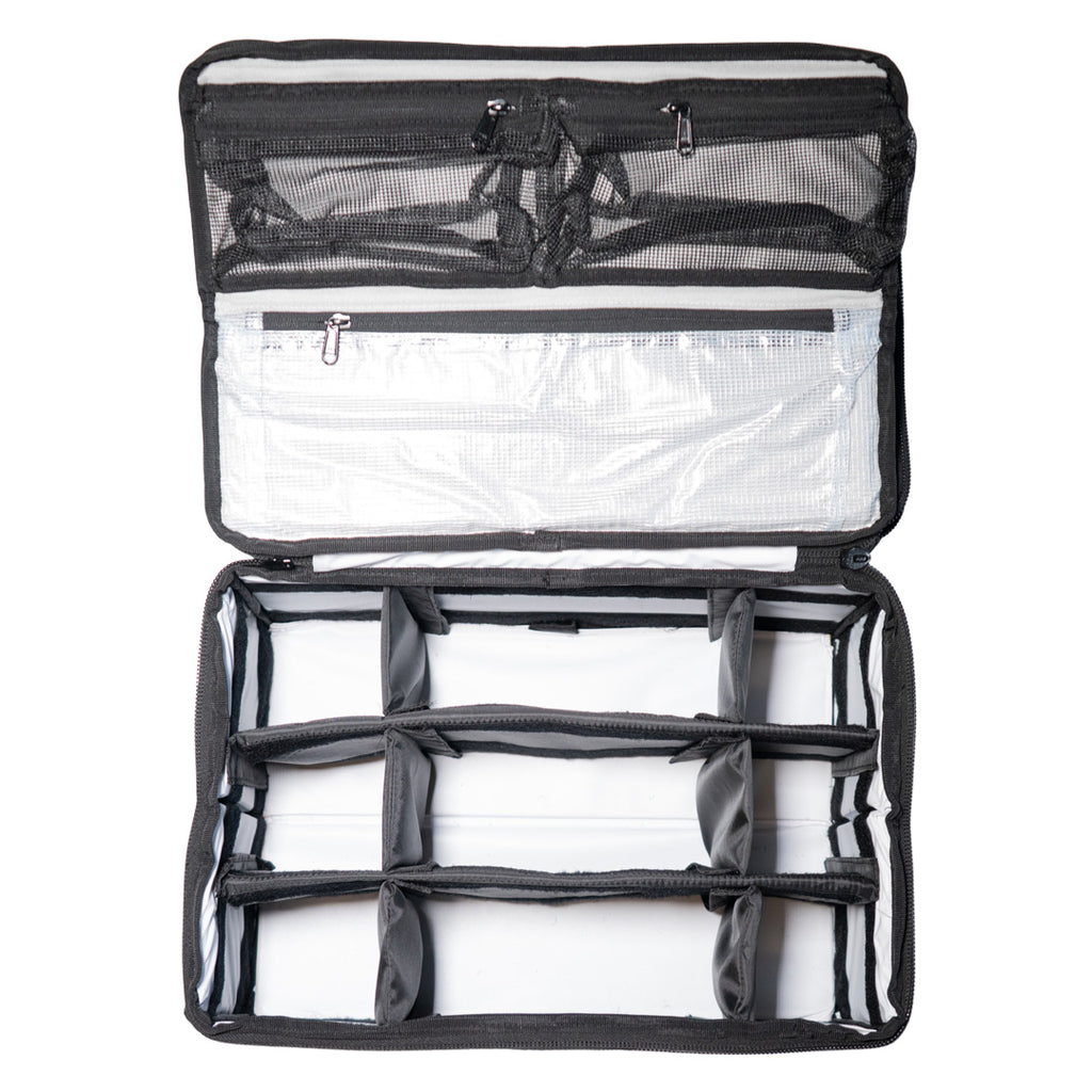 One large, clear, dust-resistant pocket running the length of the lid, perfect for manuals, maps, checklists, labels, or flat items you still want visible at a glance.