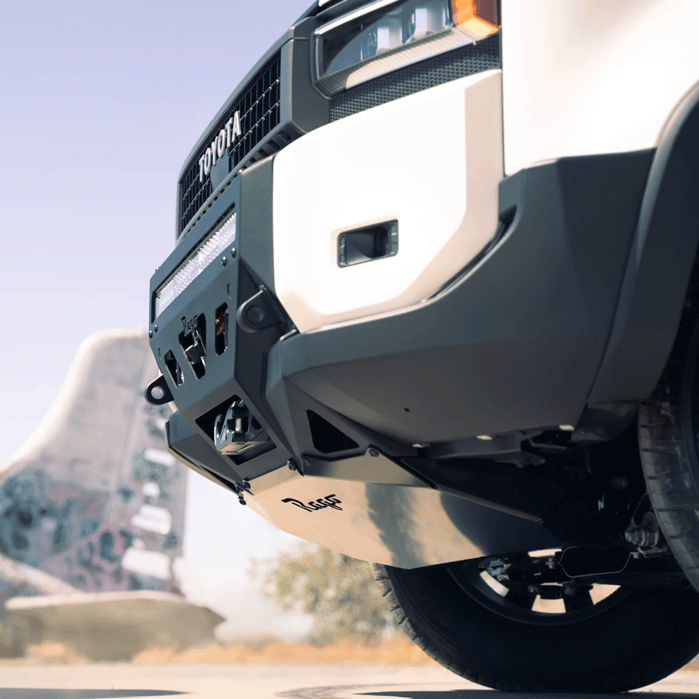The Land Cruiser 250 Series Front Skid Plate pairs with Rago’s Center Mount Front Bumper for enhanced protection from obstacles on and off the road. Shielding the front undercarriage of your rig from rocks, shrubs, and debris; the skid helps you avoid costly and unnecessary repairs. It is finished in a satin black powder coat that not only accents your Land Cruiser’s exterior styling but also matches the bumper’s sleek design. Made from durable 3/16-inch aluminum, this skid is designed to provide the ultimate durability to the front end of your rig. The skid plate is proudly made in the USA.
