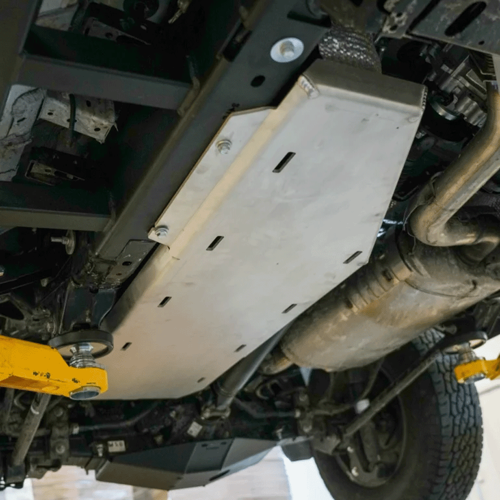 Protect the vulnerable fuel tank on your 2024 Land Cruiser with an RCI fuel tank skid plate. Prevent yourself from being stranded and stuck with hundreds of dollars of damage to your vehicle. Laser cut and CNC formed to provide an excellent fit and finish. Made of 3/16″ steel, while providing the best protection and puncture resistance using the factory fuel tank support straps. Also available in 1/4″ 5052 Aluminum, for nearly 50% reduction in weight. Completely bolt-on installation using provided hardware. Takes minutes to install.