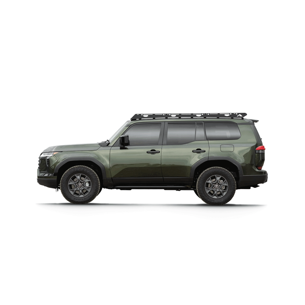 This full-length roof rack, for the 2024-2025 Toyota Land Cruiser and 2024-2025 Lexus GX550, expands on our lineup of tried and true rack systems. Our racks are some of the toughest on the market and are designed to get your gear to the places that matter the most. Explore more and worry less with our industry-leading 1/4” thick aircraft-grade aluminum side plates and stainless steel hardware. Secure your gear by bolting into one of the 10 extrusion crossbars or by strapping it directly to the side plates. This rack is “drill-free” and requires zero modification to your vehicle.