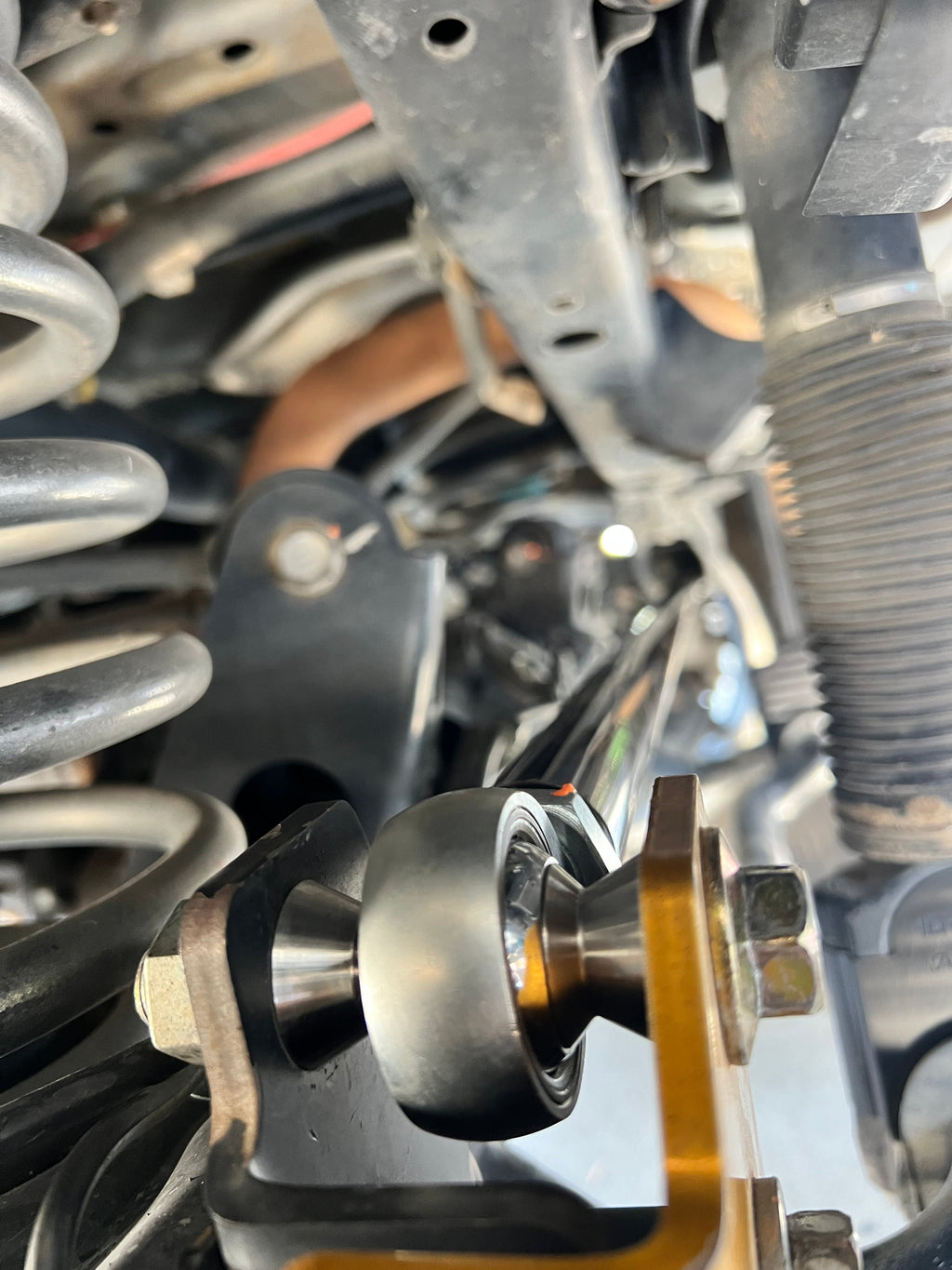 Materials typically only used in trophy truck/race trucks were utilized. Made from 7075 aircraft grade billet aluminum solid bar, not tube. You can bend it a little and it will spring right back to straight. CNC milled and tapped. Hand polished and anodized options. The ends use stainless FK heim joints (chromoly jmx12t- f1( zinc coated)) with stainless steel mis alignment spacers that are machined in house. There is no doubt, if you want the best track bar/ pan hard bar on the market. This is it! You just have to pay to play!