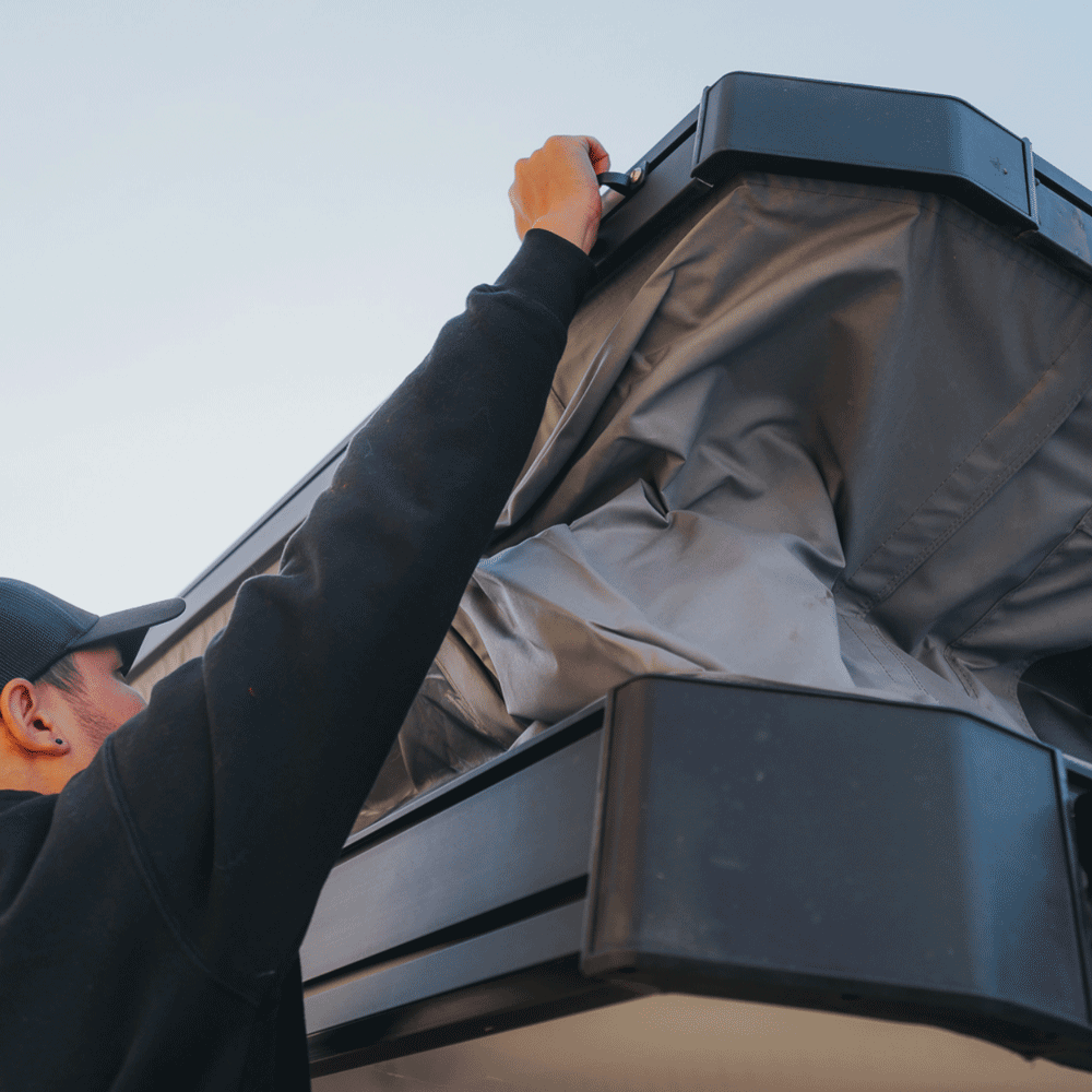 Our versatile Grab Handle is designed to mount anywhere on the camper in the T-Slot. This handle is perfect for a variety of uses, from assisting with raising and lowering the roof to providing support when stepping up onto the tailgate or standing on the tire or door frame.